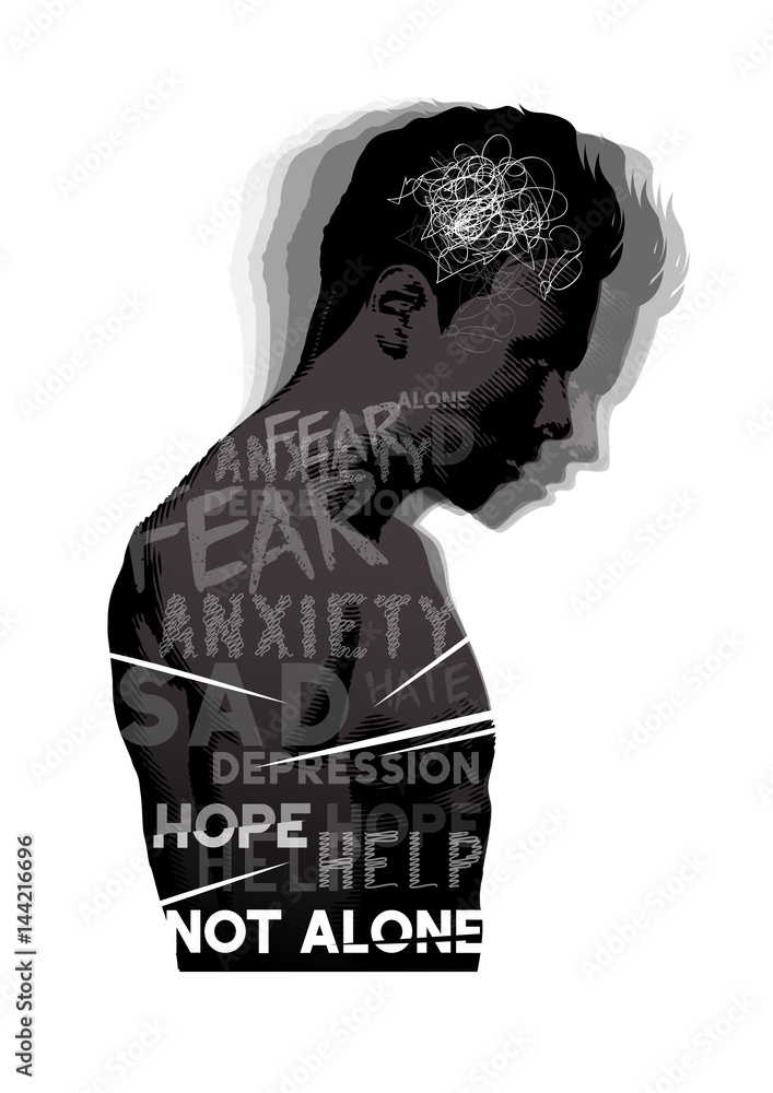 A Man Experiencing Feelings Of Fear Anxiety And Depression Mental Health Vector Illustration Stock Vector Adobe Stock